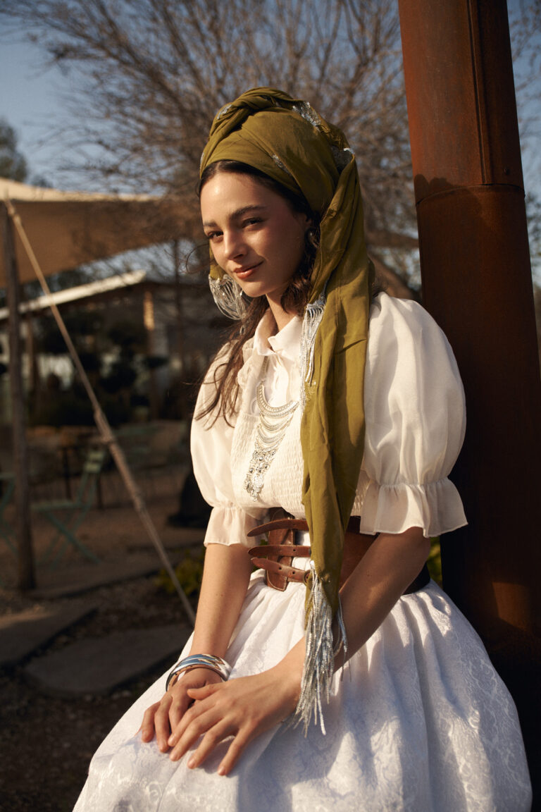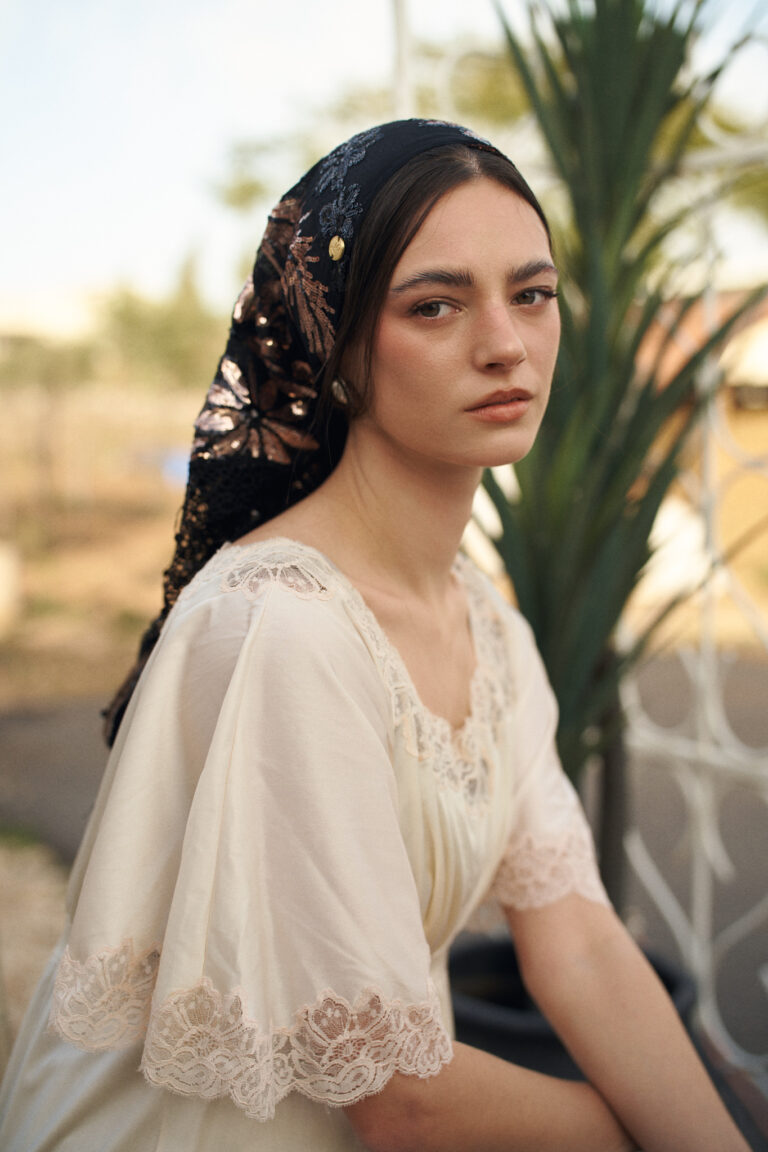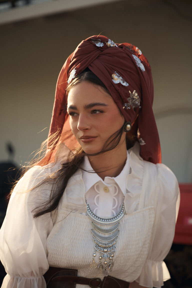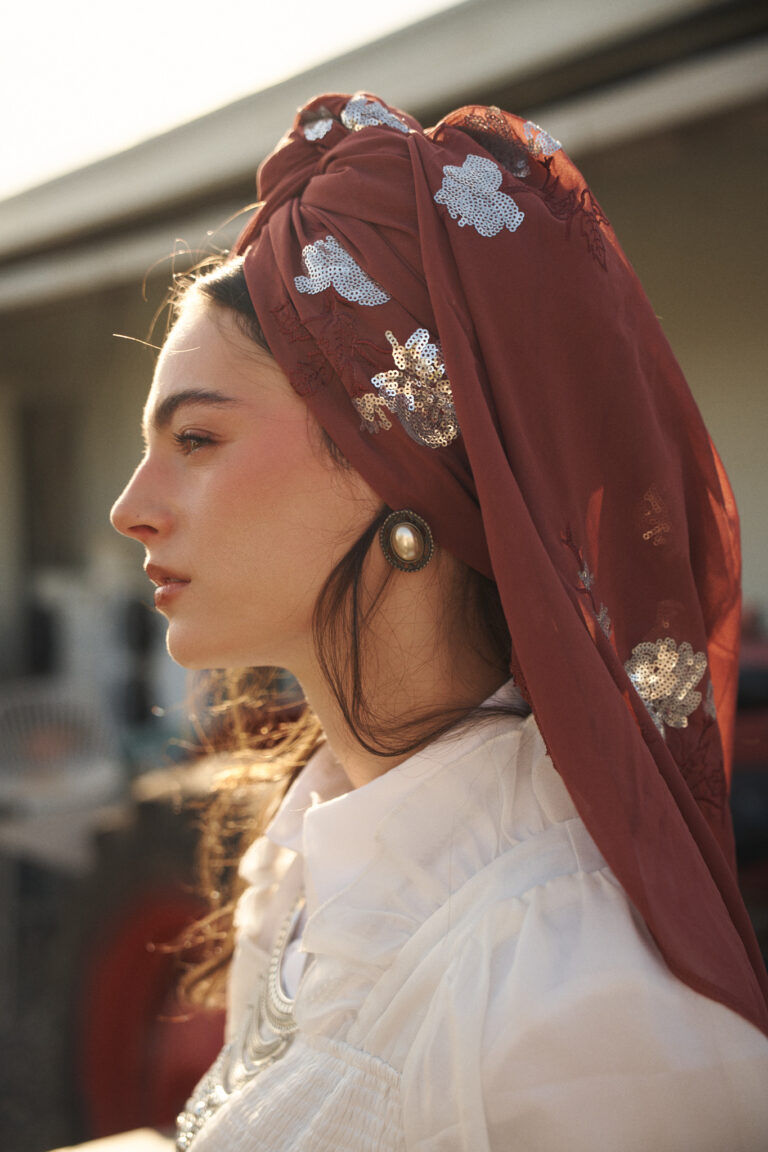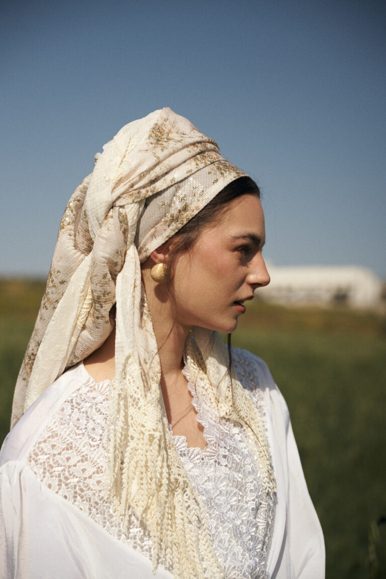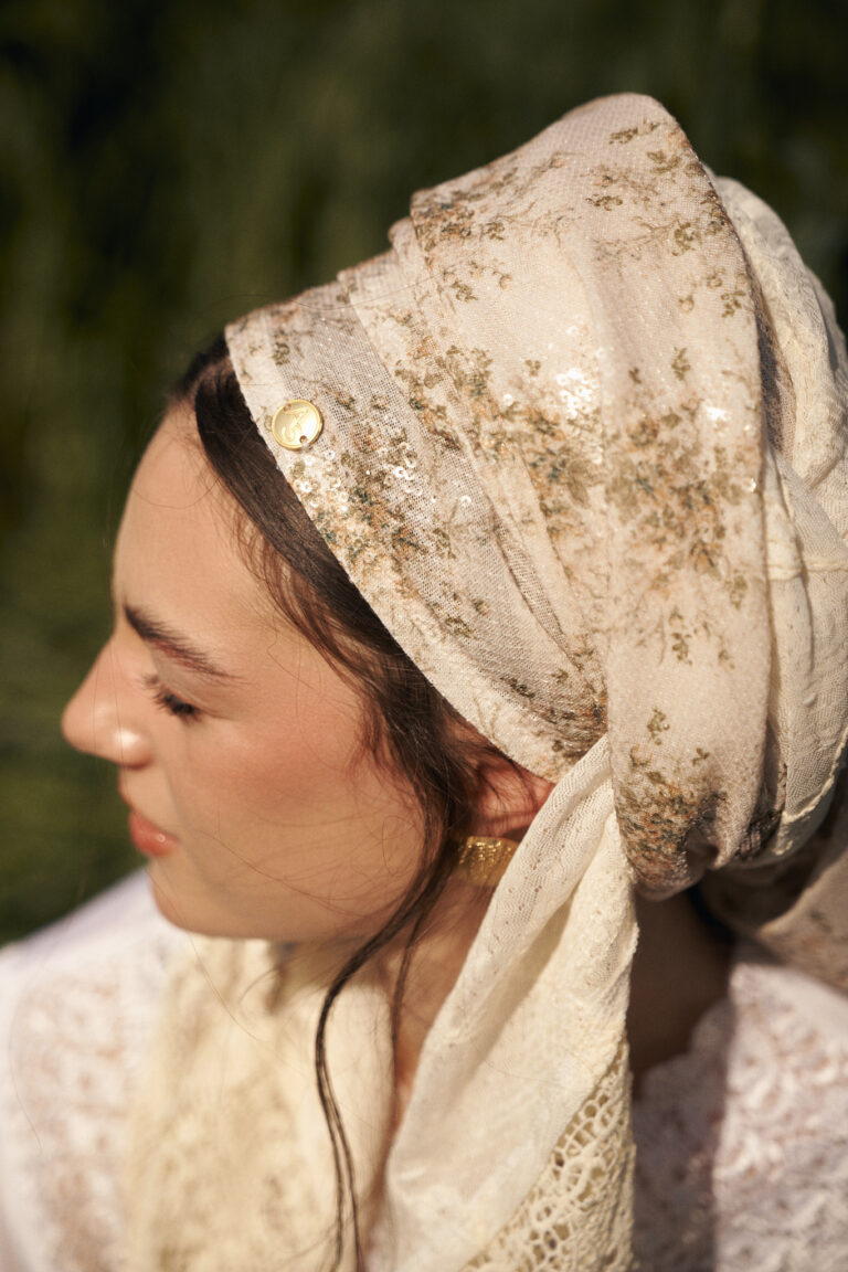 בדים עשירים ומלטפים שנוצצים באור יקרות, הקולקציה מזכירה לנו את התקווה והחלום החבויים בכל אחת מאיתנו. הבשורה המרגשת העונה היא פרשנות חדשה ויוקרתית למטפחת הבנדנה /משולש בנוני, בבד עשיר ומנצנץ המביא סטייל נקי ורענן, אך כזה שראוי לרגעים הכי חגיגיים שלך.