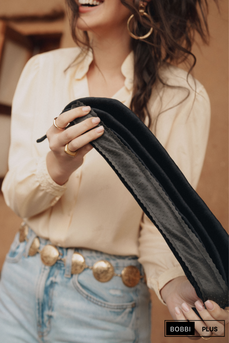 BOBBI MAGNET זהו שדרוג של ה-BOBBI הרגיל. BOBBI הינו פטנט שהומצא ופותח לראשונה אצלנו במחשבה רבה על הצרכים ומבנה הראש המדויק של נשים הלובשות מטפחות, BOBBI הינו סרט מונע החלקה רחב במיוחד בעל נפח מדורג הבנוי לפי מבנה הראש, כך שמתקבל סרט מונע החלקה חזק במיוחד בגלל השטח הגדול של BOBBI וגם נפח יפה ומחמיא החוסך את הצורך במטפחת בסיס כלשהי, BOBBI הוא הפתרון היחיד לנפח לבעלות כיסוי ראש חלקי אך גם נותן מענה לכיסויי ראש מלא לנשים שאוהבות נפח במראה טבעי כלומר נפח קדמי ולא כרית עם נפח אחורי BOBBI MAGNET הוא הדור הבא של הבובי הרגיל, עם סגירת מגנט הנותן מענה לשמירת המטפחת, לא נתפס בשיער, גמיש בהיקף ועמיד לאורך זמן, מעניק חווית סגירה הכי מיידית, פשוטה ומלאה בסטייל, יש שלוש אופציות לסגירת המגנט כך שיתאים בדיוק לגודל של ראשך, אז בואי תתמגנטי….
