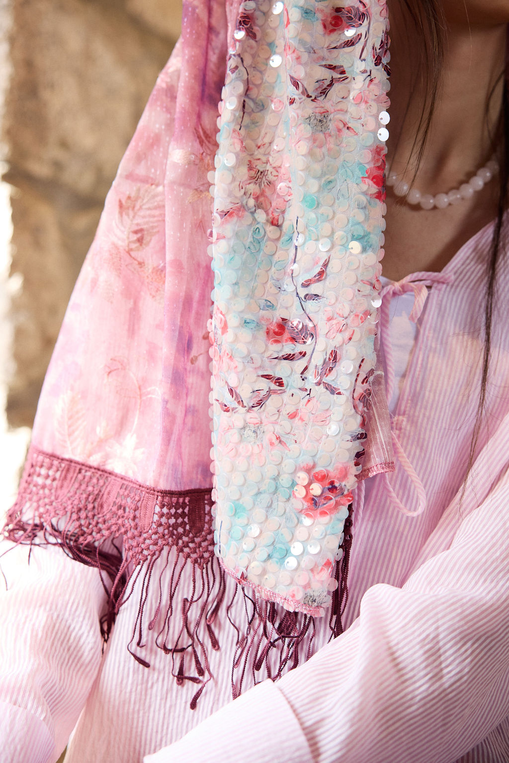 המטפחות מביאות איתן טקסטורות עם עומק, רקמות מלאות אופי, אבל עם נגיעה מודרנית – קלילות, זוהר כמעט בלתי מורגש, ורכות שמלטפת .