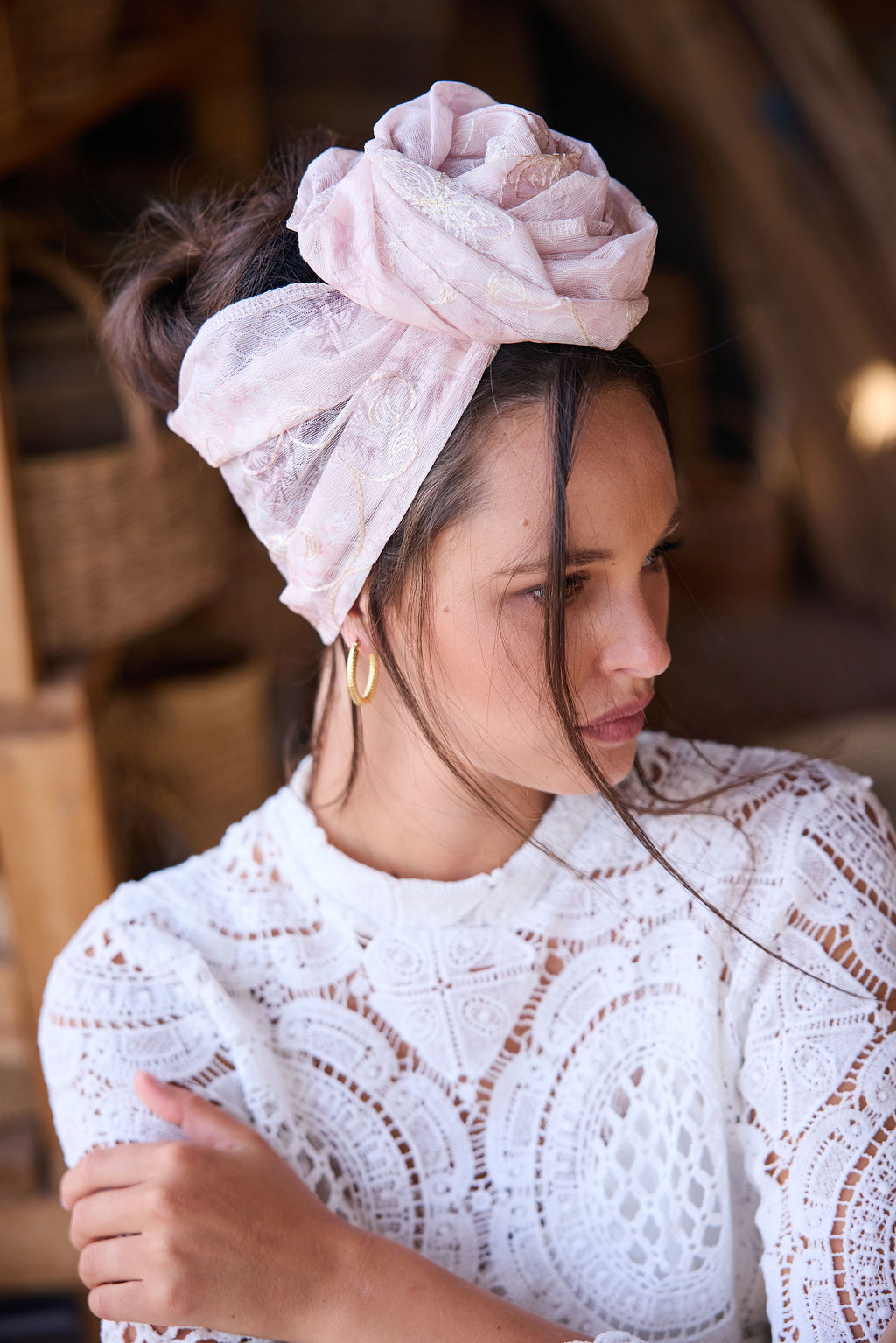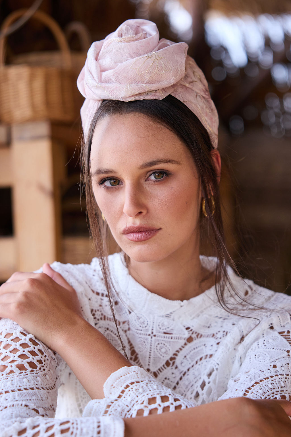 שילוב בדים: בד רך ושקוף-למחצה עם רקמה עדינה וטקסטורה אוורירית, בגוון ורוד פודרה רך עם נגיעות בהירות, קליל במיוחד ויוצר מראה נשי, רומנטי ולא מתאמץ.