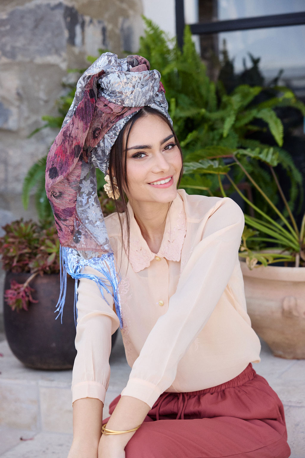 המטפחות מביאות איתן טקסטורות עם עומק, רקמות מלאות אופי, אבל עם נגיעה מודרנית – קלילות, זוהר כמעט בלתי מורגש, ורכות שמלטפת .