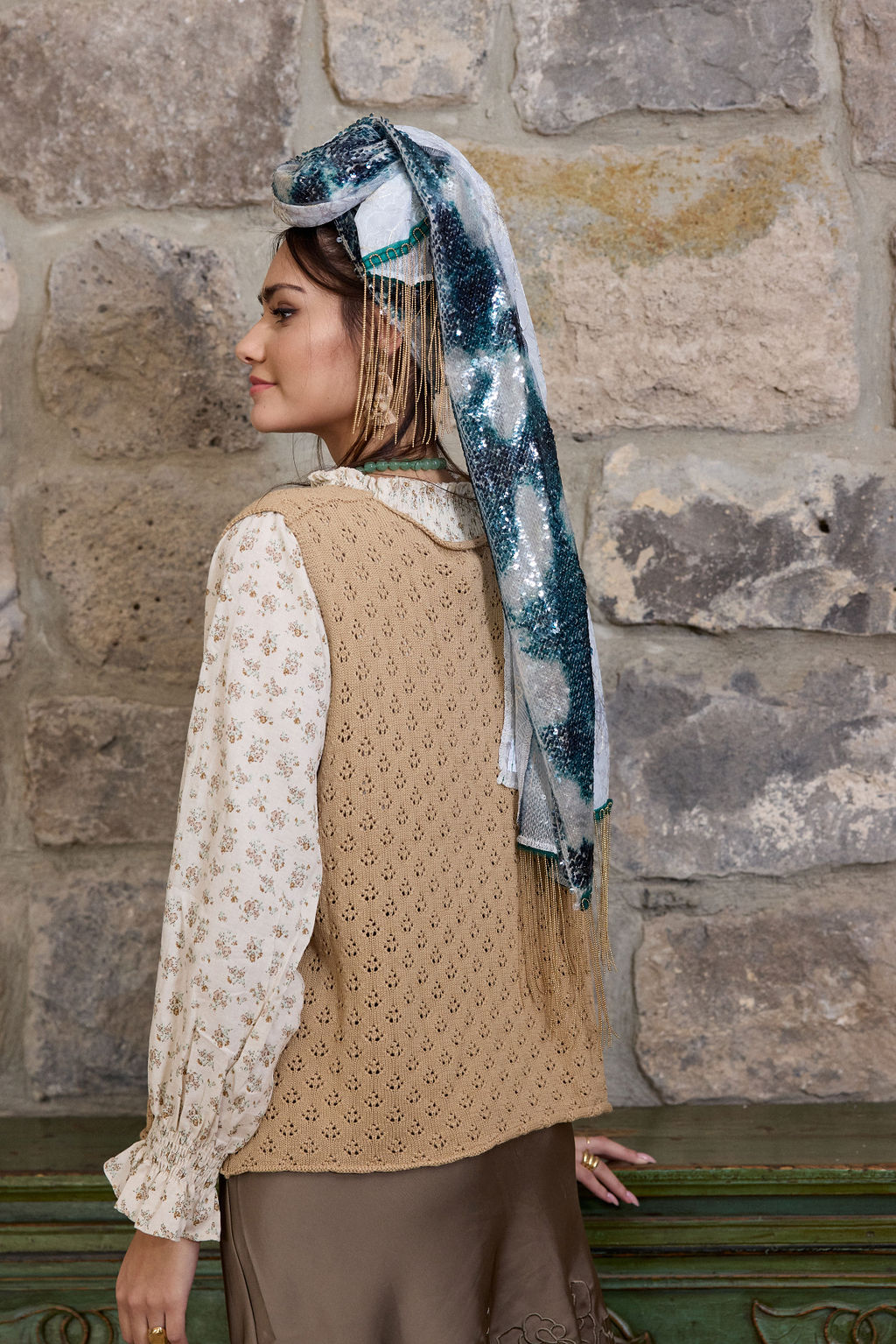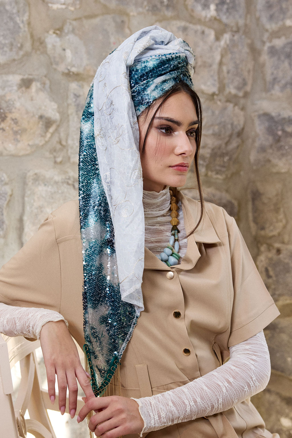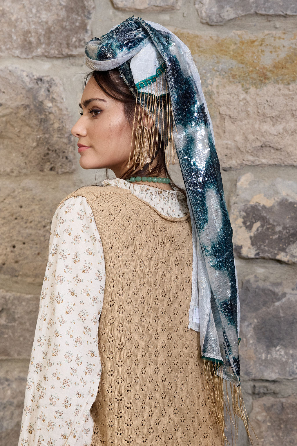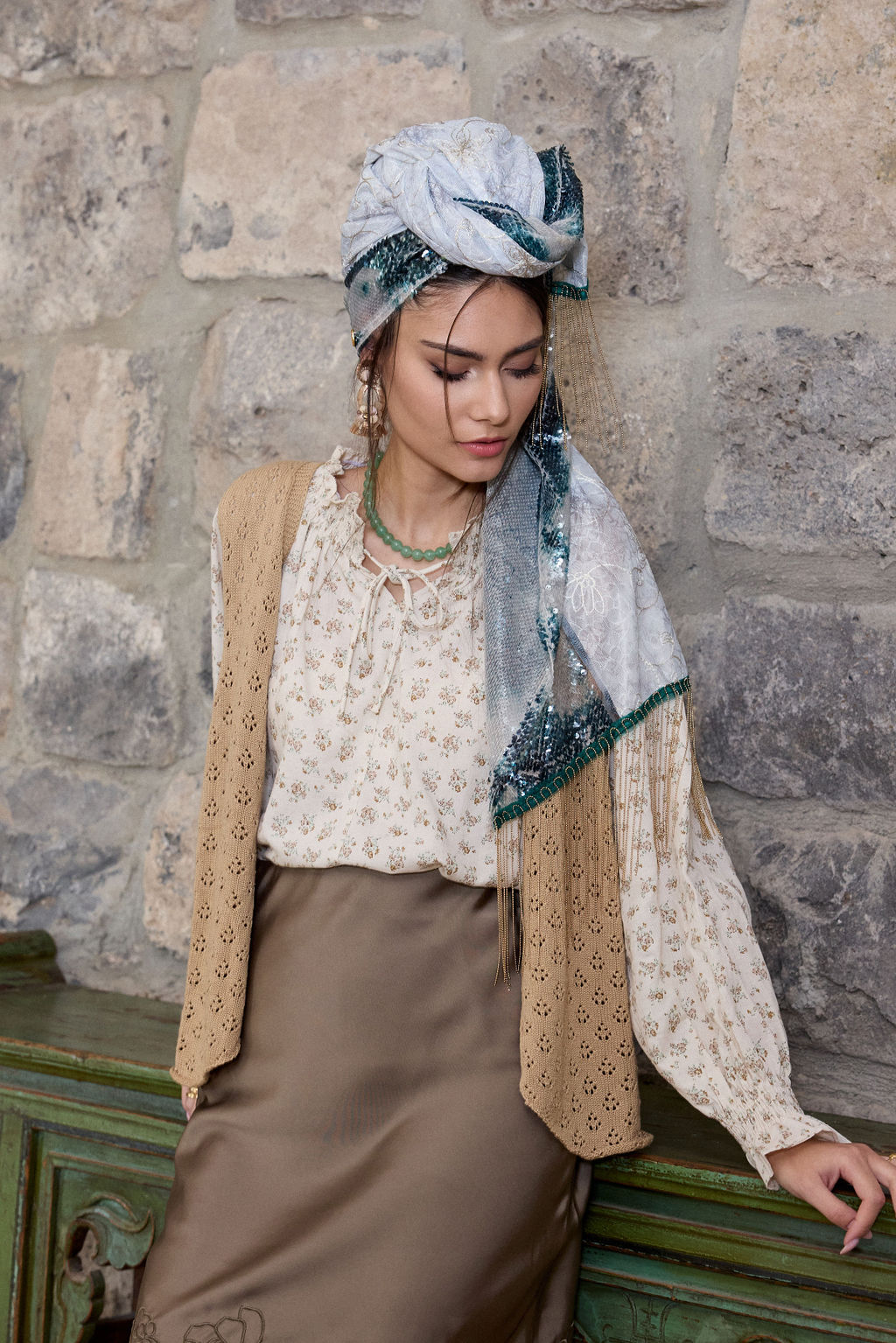 המטפחות מביאות איתן טקסטורות עם עומק, רקמות מלאות אופי, אבל עם נגיעה מודרנית – קלילות, זוהר כמעט בלתי מורגש, ורכות שמלטפת .
