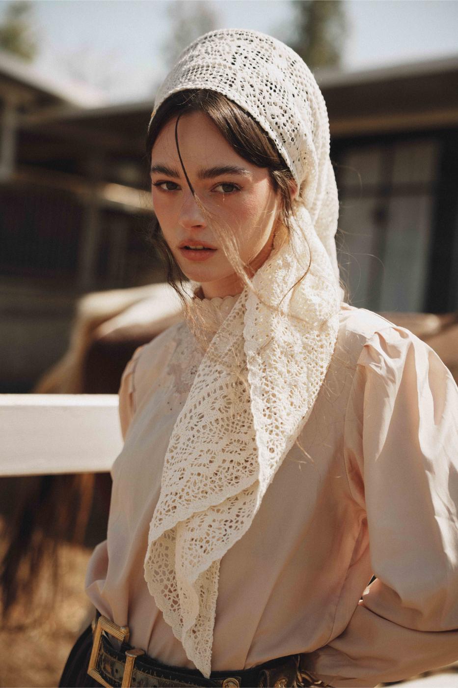 בד תחרה מיוחד במראה מסורתי של עבודת יד עם סיומת קרושה עשירה ודומיננטית שנותנת סיום יפה ומיוחד למטפחת.